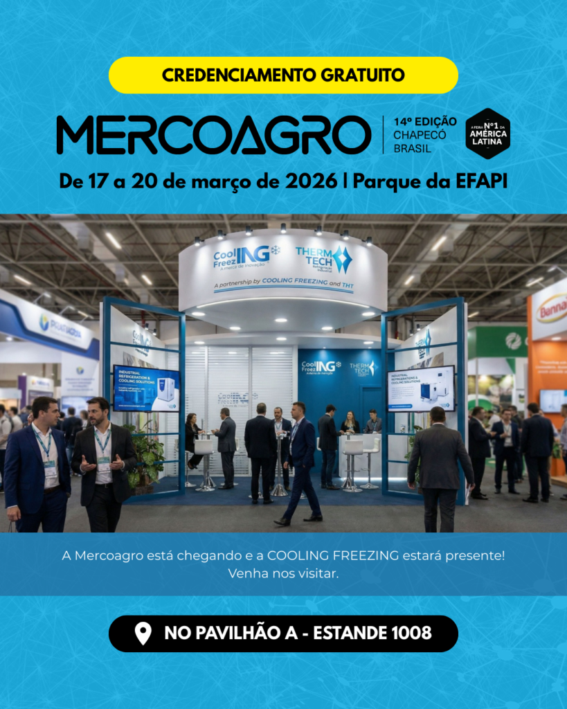 De 17 a 20 de março de 2026 acontece a Mercoagro, a maior feira de negócios do setor na América Latina, em Chapecó – SC. E a Cooling Freezing estará presente levando soluções completas em refrigeração industrial, tecnologia, inovação e alta performance para o seu negócio.